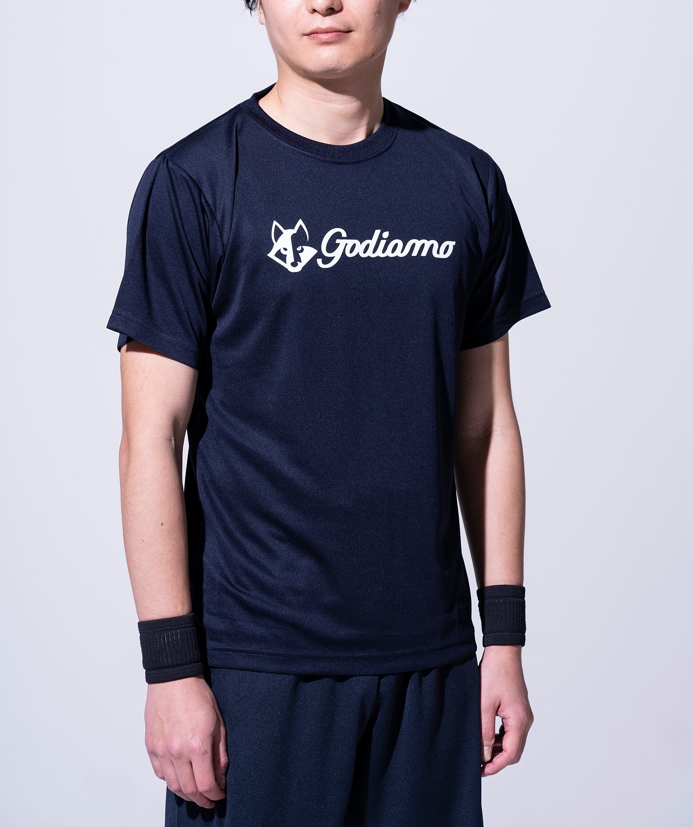胸にGodiamoマーク、ロゴ(ホワイト)をプリント。