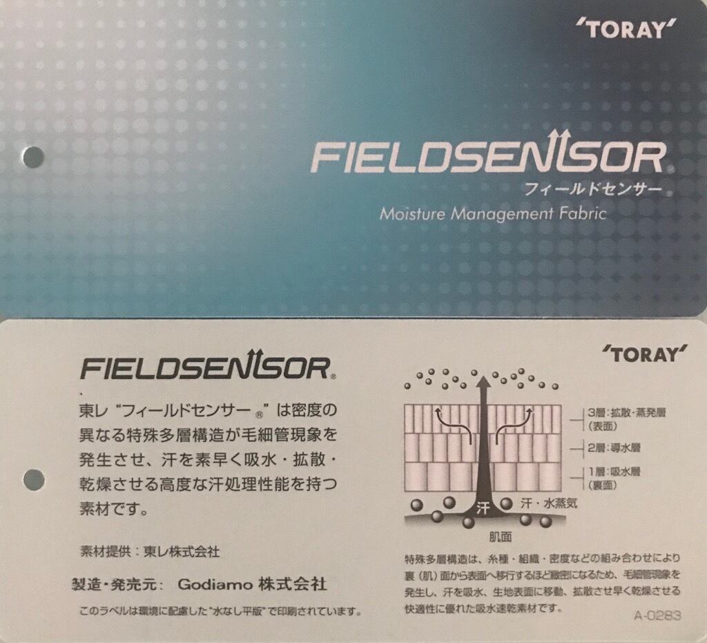 FieldSensorは、東レの誇るハイテク素材で、吸水、拡散、乾燥を高度にこなす生地となっており、YKKのファスナーは裏づかいを行い、ファスナーの表層の凹凸を無くし、フラットの仕上げにしました。